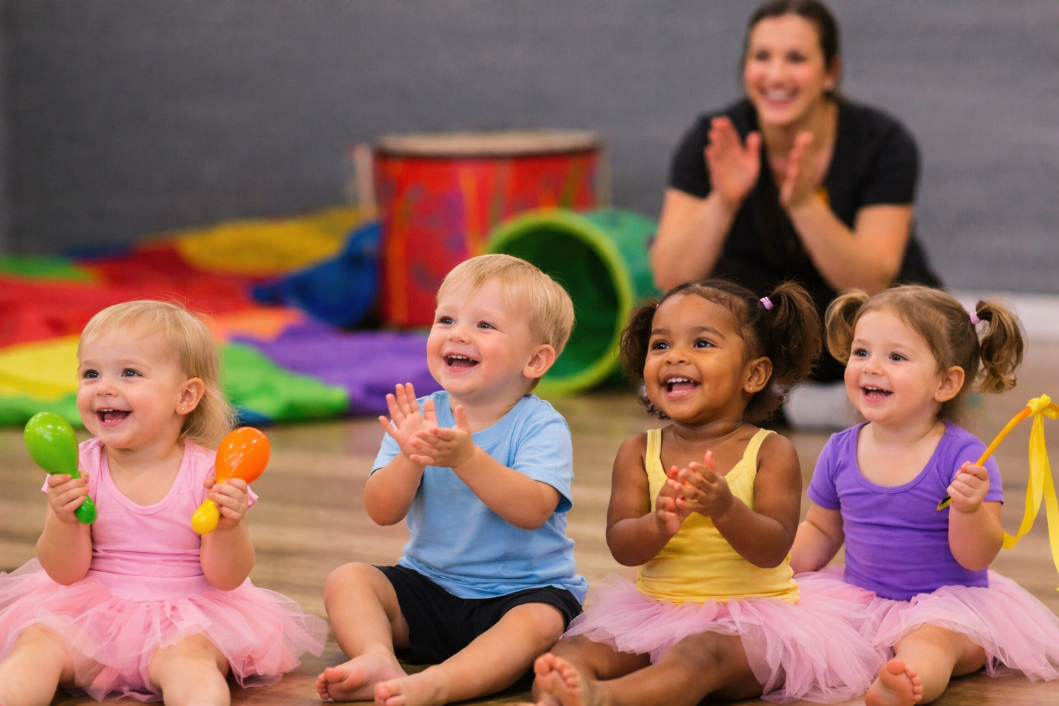 Children develop coordination, balance, listening skills, rhythm awareness, and early classroom readiness.